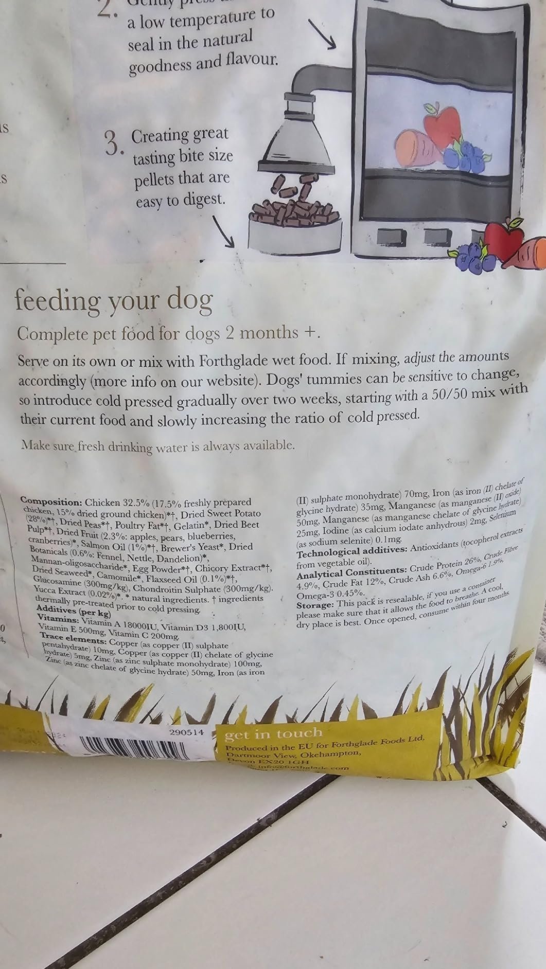 - TRANSITIONING: Dog’s tummies can be sensitive to change, so introduce gradually over two weeks, starting with a 50/50 mix with their current food and slowly increasing the ratio of cold pressed